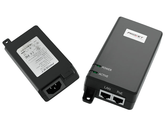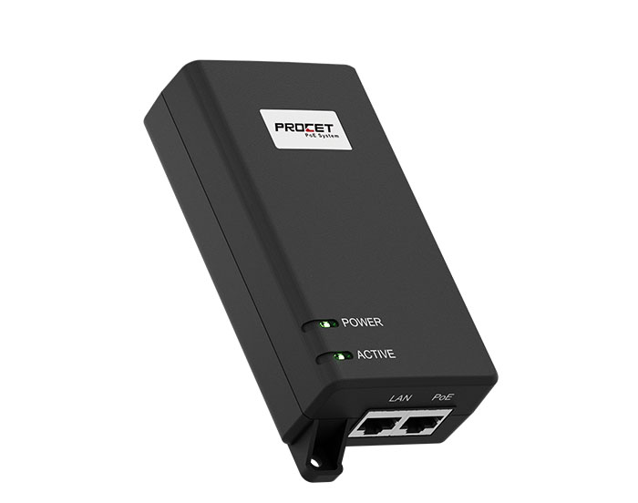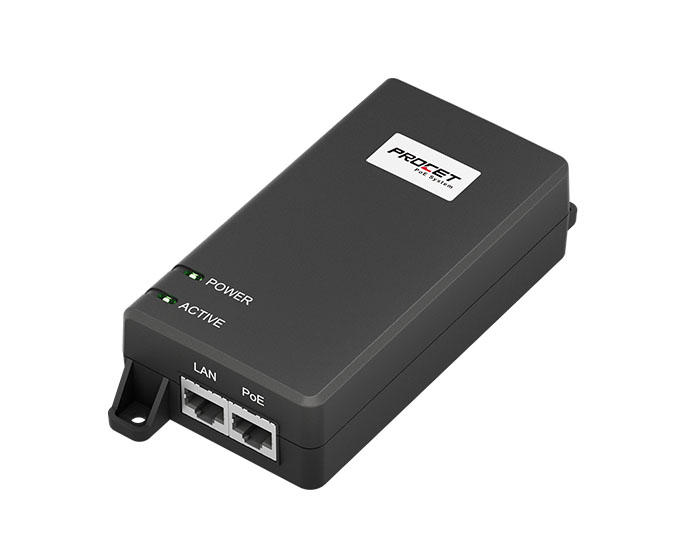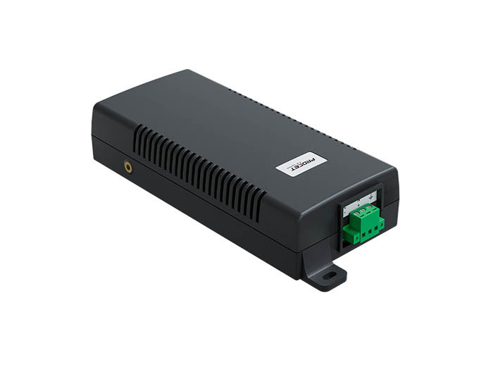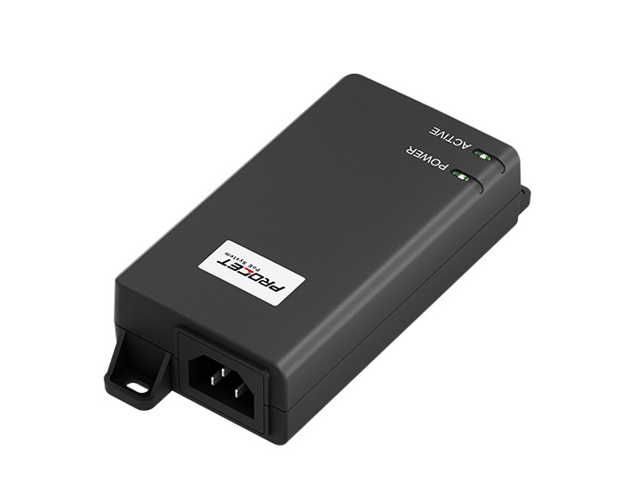 PT-PSE104GO-30 is an indoor rated PoE midspan Injector specia ly designed for complex backhaul and networking applications. Enclosed in an IP40 fire retard ant plastic case.